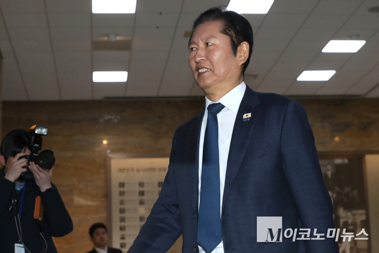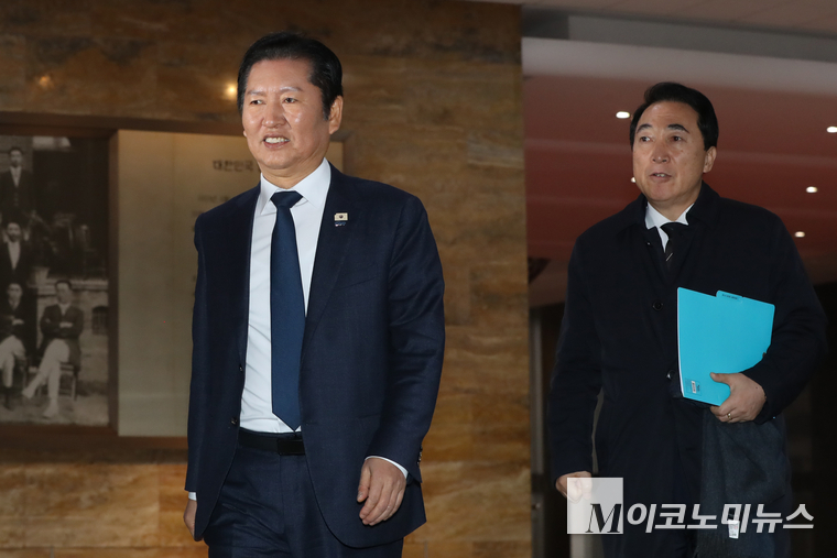 「M포토」 ‘합당 관련’ 비공개 의총 참석하는 정청래
