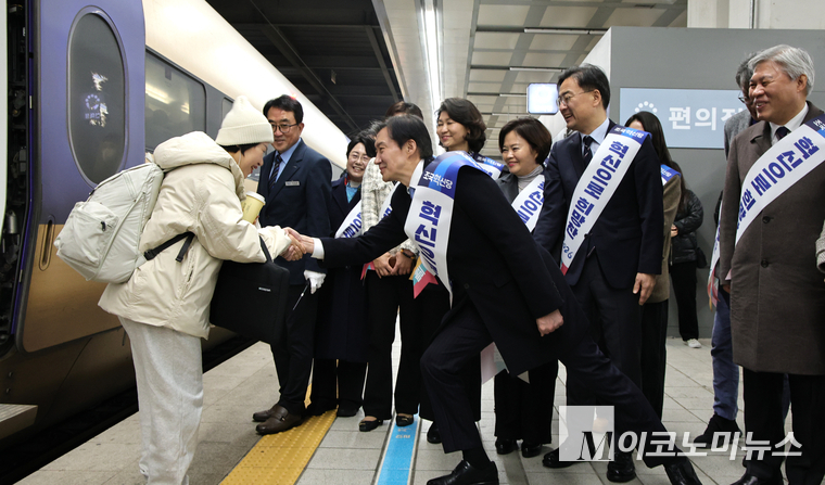 「M포토」 조국혁신당, 용산역 ‘설 명절 귀성 인사’
