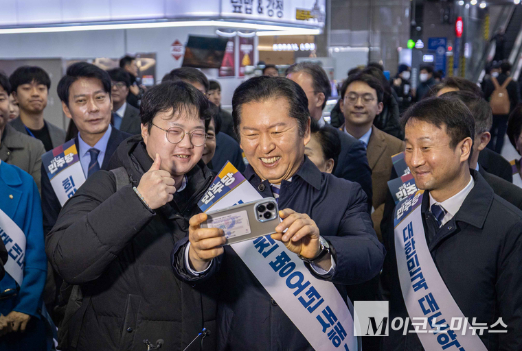 「M포토」 민주, 용산역 찾아 시민들과 귀성 인사