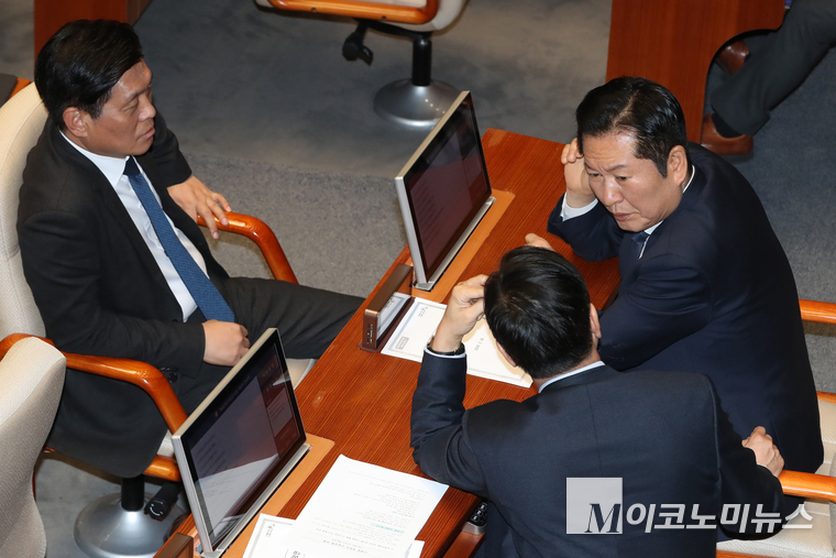 「M포토」 의원들과 대화하는 정청래 대표