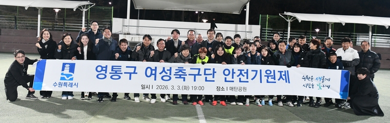 수원시 영통구(구청장 장수석)는 지난 3일 병오년(丙午年)을 맞아 영통구 여성축구단의 무사고와 발전을 기원하는 '안전기원제'를 추진했다"고 4일 밝혔다.