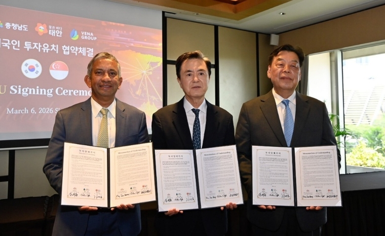 협약식은 이날 싱가포르 스위소텔 더 스탬포드 호텔에서 열렸으며, 니틴 압테 뷔나 그룹 회장과 정광진 한국 대표, 김태흠 충남지사, 가세로 태안군수 등이 참석했다.