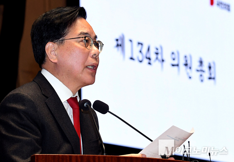 송 원내대표는 이날 국회 본관에서 열린 긴급 의원총회에서 “지금 우리당이 국민 앞에 입장을 밝혀야 될 사안이 몇 가지 있다”며 이같이 말했다.