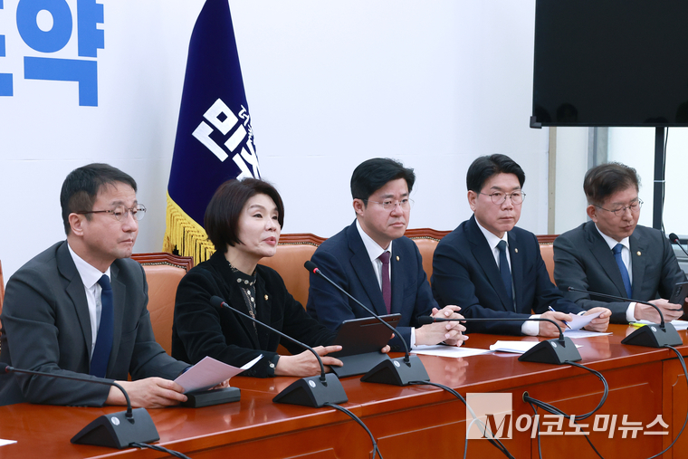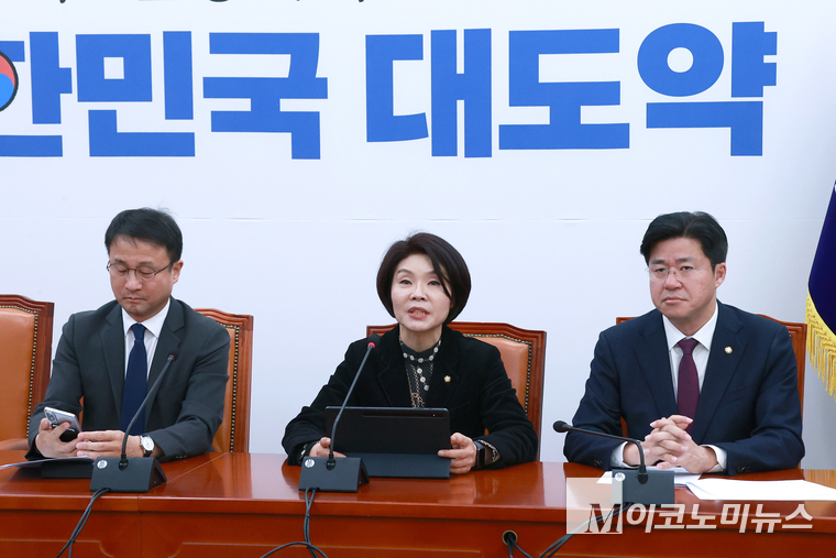 「M포토」 원내대책회의에서 발언하는 한정애