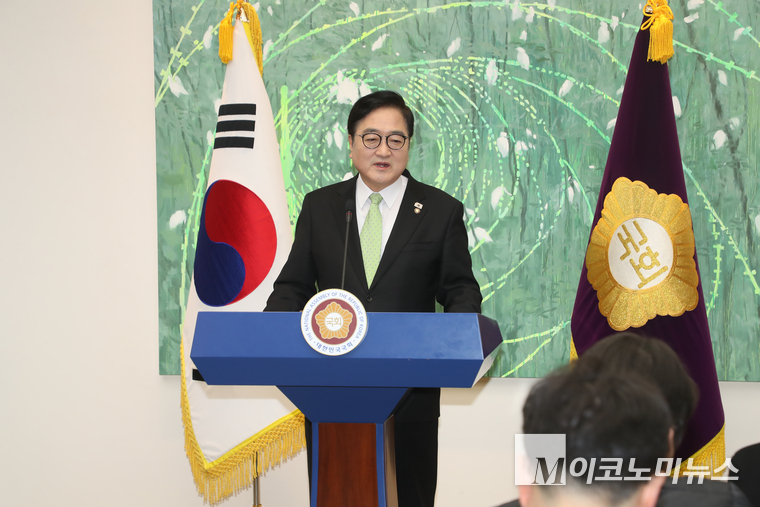 「M포토」 개헌 관련 긴급 기자회견에서 질의 답하는 우원식 의장