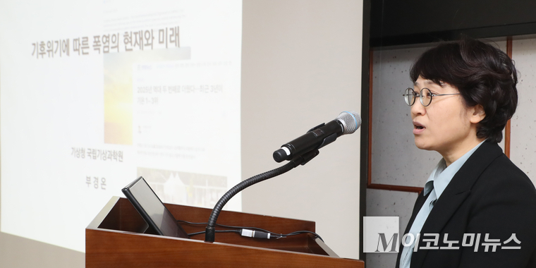 이날 토론회는 박해철 의원의 개회사와 이미선 기상청장의 환영사에 이어 부경온 국립기상과학원 기후변화예측 팀장, 안윤진 질병관리청 기후보건건강위해대비과장, 김진희 행정안전부 기후재난관리과장, 김성묵 기상청 예보정책과장의 발제로 시작됐다.