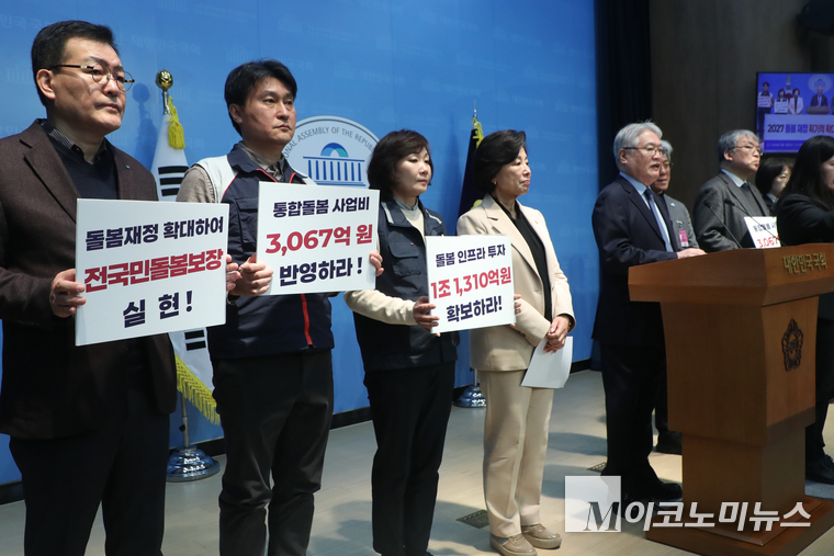 남인순 더불어민주당 의원과 돌봄 재정 획기적 확대 공동행동(가) 참여단체는 18일 국회 소통관에서 ‘2017년 돌봄 재정 획기적 확대 촉구’ 기자회견을 열고 노인과 장애인을 위한 사회적 돌봄 체계가 갖춰지지 않아 당사자의 고통과 가족의 부담이 가중되고 있다면서 정부와 국회를 향해 2027년 통합돌봄 사업비 3067억원 반영과 돌봄 인프라 투자 1조 1310억원 확보를 촉구했다.