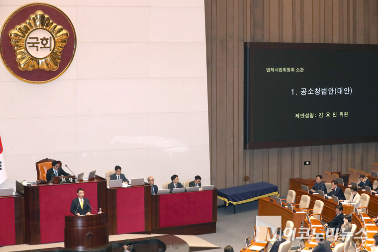 국회는 이날 오후 본회의를 열고 경찰에 대한 검찰의 지휘와 감독권을 폐지하고 수사와 기소의 분리 원칙에 따라 기소만을 전담하는 공소청을 신설하는 내용의 공소청법을 상정했다.