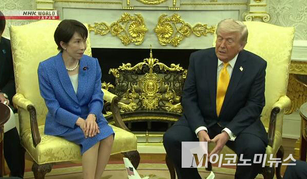 트럼프 미국 대통령과 다카이치 일본 총리가 19일(현지시간) 미국 백악관 집무실에서 일·미 정상회담을 열었다. 이 자리에서 양국 정상은 이란 정세와 관련해 조기에 사태를 진정시킬 필요가 있다는 데 의견을 같이 했다.