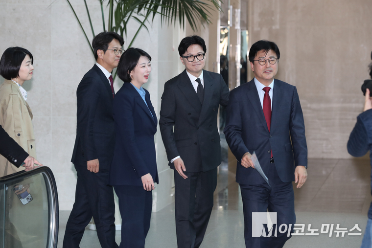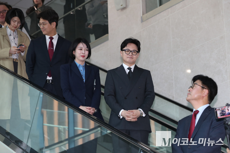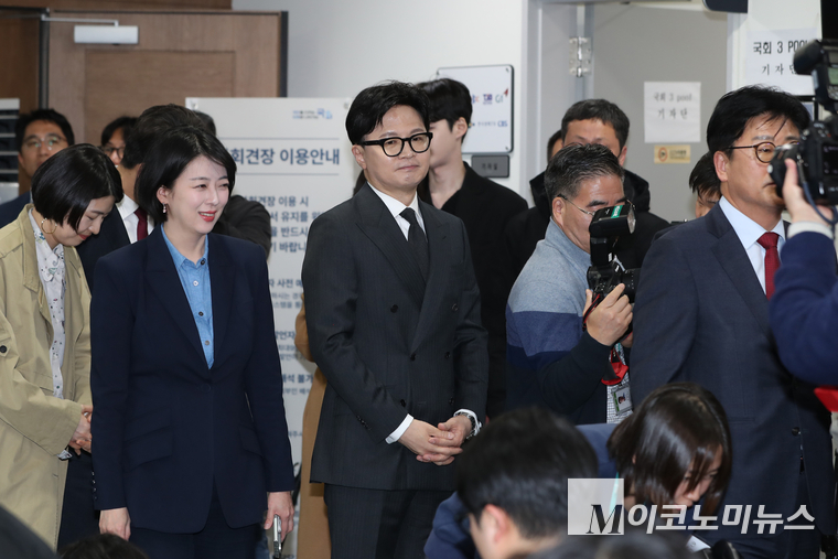 한동훈 국민의힘 전 대표가 20일 김종혁 국민의힘 전 최고위원이 징계 효력정지 가처분 신청 인용관련 기자회견에 참석해 배현진·한지아 의원과 함께 기자회견을 지켜봤다. 이날 서울남부지법 민사합의51부(수석부장판사 권성수) 김 전 최고위원이 국민의힘을 상대로 제기한 징계 효력정지 가처분 신청에 대해 인용 결정을 내렸다고 밝혔다.