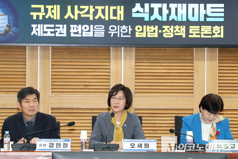 오세희 더불어민주당 의원은 인사말에서 “특정 업종을 일률적으로 규제하기 위한 자리가 아니다”라며 “변화된 유통 환경에서 발생한 제도 공백을 점검하고, 시장의 형평성과 공정한 경쟁 질서를 어떻게 회복할 것인지 논의하기 위한 자리”라고 밝혔다. 이어 “최근 일부 대형 식자재마트는 ‘유통산업발전법’과 ‘대규모유통업에서의 거래 공정화에 관한 법률’에서 규정하는 대형마트에 버금가는 규모와 영업 행태를 갖추고 있음에도, 업태 분류 기준의 한계로 규제 대상에서 제외된 채 성장해 왔다. 규제의 문제가 아니라 기준의 문제다. 기준을 바로 세워애 한다”고 강조했다.