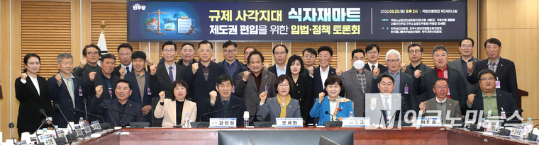 ‘식자재마트 규제 사각지대’ 제도권 편입을 위한 입법·정책 토론회가 23일 국회소상공인민생포럼(대표의원 서영교)과 더불어민주당 전국소상공인위원회(위원장 오세희) 공동 주최로 국회에서 열렸다. 이날 토론회 발제에는 구진경 산업연구원 신산업전략연구실 실장과 차남수 소상공인연합회 정책개발 본부장이 나섰고 이어진 지정 토론은 강현철 한국법제연구원 선임연구위원이 좌장 맡아 진행됐다.