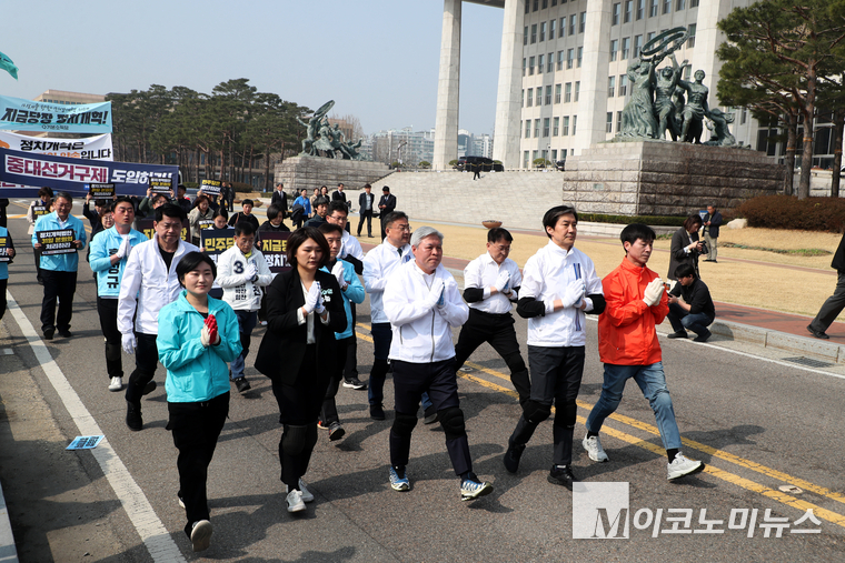 「M포토」 개혁진보4당, 국회에서 정치개혁 촉구 ‘3보1배’