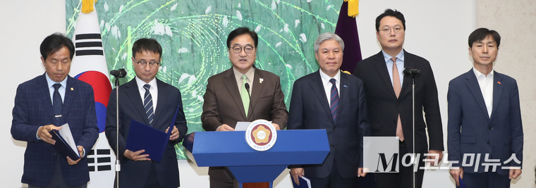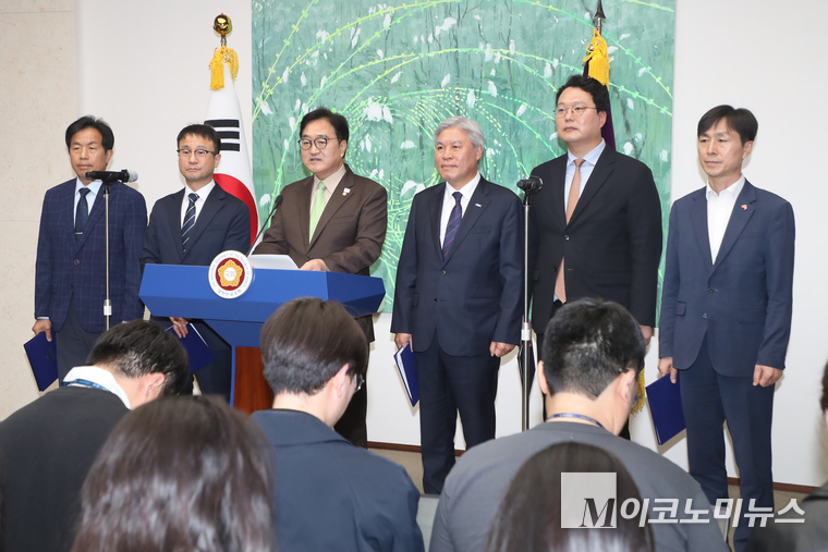 「M포토」 초당적 개헌추진 기자회견하는 우원식 의장과 제정당 원내대표