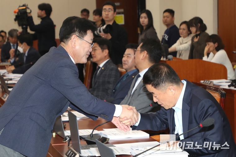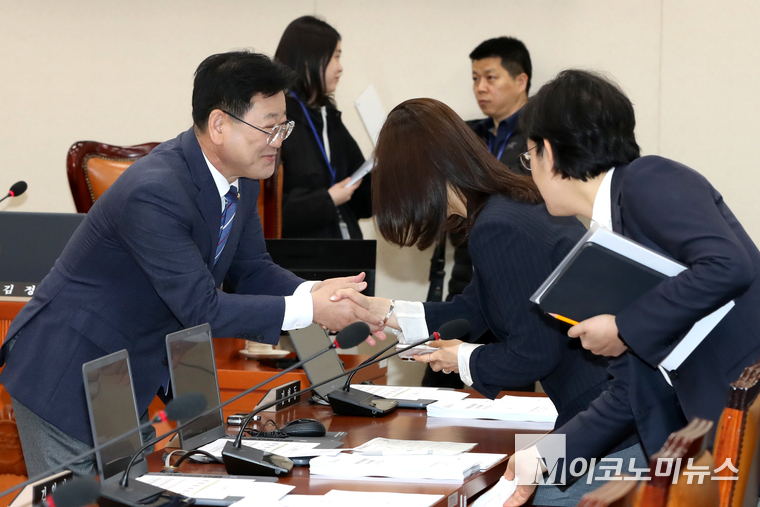 「M포토」 기후노동위 전체회의서 인사하는 김정호 신임 위원장