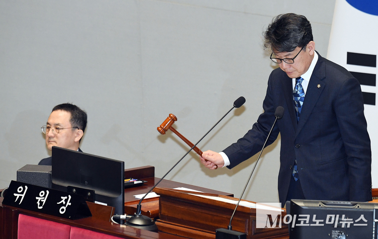 「M포토」 의사봉 두드리는 진성준 예결위원장