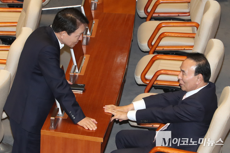 「M포토」 국회 본회의서 대화하는 박덕흠-성일종