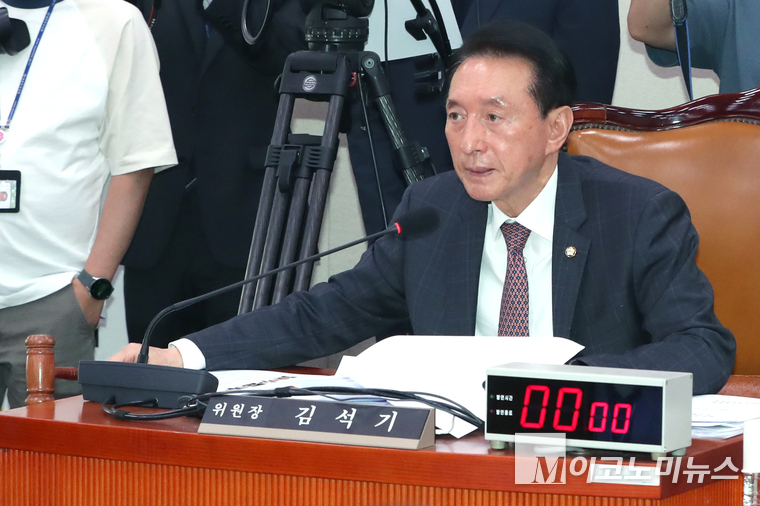 「M포토」 의사봉 두드리는 김석기 위원장