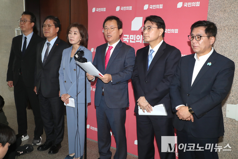 국민의힘 소속 국조특위 위원들도 이날 국회 원내대표실 앞에서 기자회견을 열고 공세에 가세했다.
