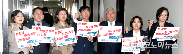 「M포토」 “기득권 야합 규탄” 구호 외치는 개혁진보4당