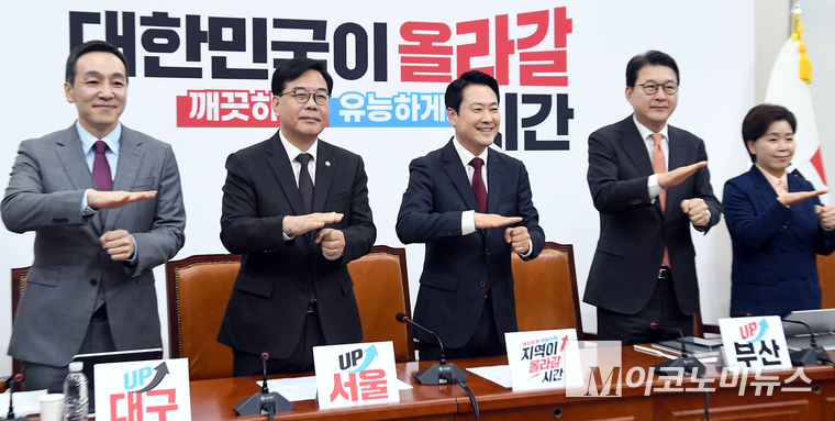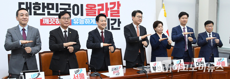 「M포토」 장애인의 날 맞아 수어 인사하는 국민의힘 지도부