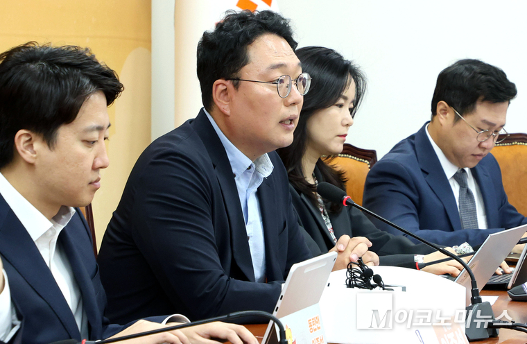 천하람 개혁신당 원내대표는 20일, 최고위원회의에서 한국의 국가부채 비율 상승을 경고한 IMF의 전망을 인용하며 김용범 청와대 정책실장 등 정부의 참모들을 강하게 비판했다.