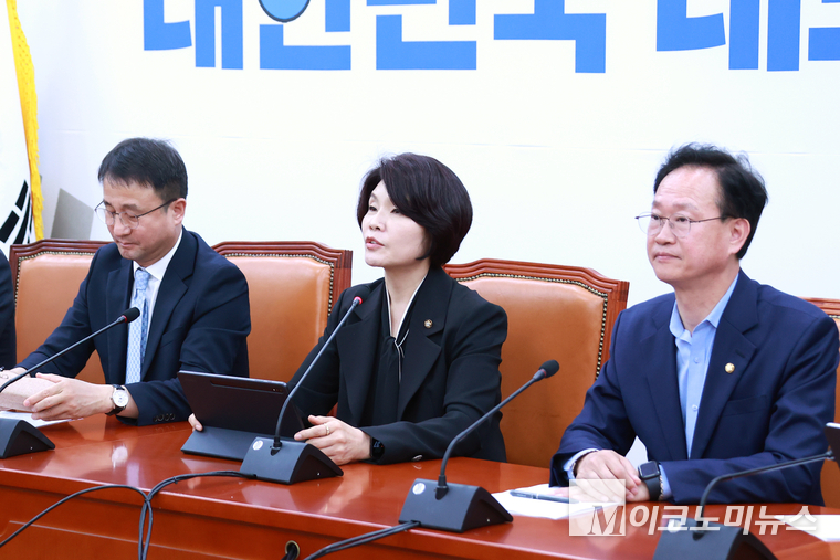 「M포토」 원내대책회의서 발언하는 한정애 정책위의장