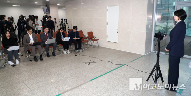 「M포토」 장동혁 기자간담회 관련 질의에 답하는 배현진 의원