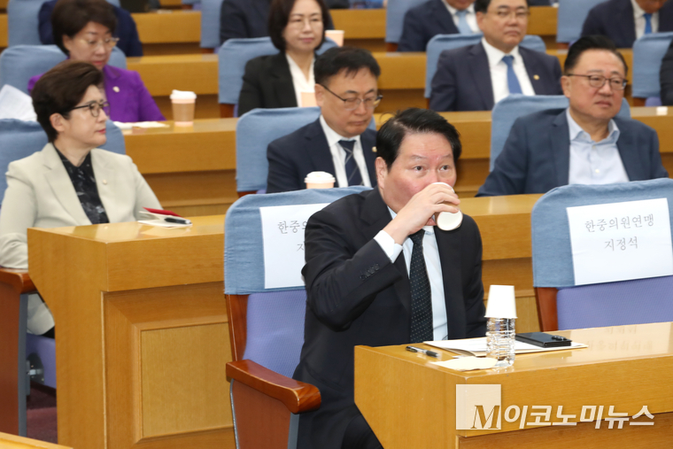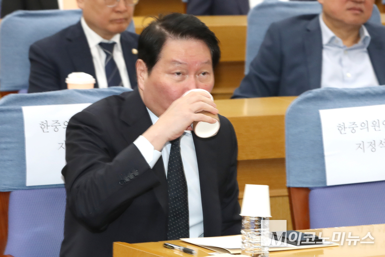 「M포토」 강연 전 물 마시는 최태원 SK그룹 회장