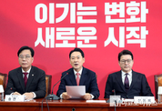 정청래 더불어민주당 대표는 “내란재판은 침대 축구처럼 늘어졌고 내란에 동조한 국민의힘은 사과는커녕 민생·개혁 입법 방해에 열중하고 있다”고 지적했다. 정청래 대표는 12일 국회에서 열린 최고위원회의에서 “책임 있는 여당으로서 지난 임시국회에서 처리하지 못했던 민생 법안들을 신속하게 처리하겠다”며 이같이 밝혔다. 정 대표는 “윤석열·김건희의 비리와 내란 진상을 규명하고 청산하는 역사적 과제를 반드시 완수하겠다”며 “새 지도부 구성이 완료된 만큼, 지금 다시 한 번 각오를 다짐한다. 지금까지 그래왔던 것처럼, 민주당은 원팀·원보이스로 똘똘 뭉쳐 지방선거 승리와 이재명 정부 성공을 위해 매진하겠다”고 말했다. 그는 또 “국민과 당원의 뜻에 따라 민생 회복, 내란 청산, 개혁 완수를 행동으로 증명하는 지도부가 되겠다”며 “민주당 지도부는 너나없이 우리만 존재한다”며 “이재명 정부의 성공을 위하여 늘 그랬듯이, 원팀·원보이스 팀플레이를 잊지 않겠다”고 덧붙였다. 한병도 신임 원내대표 “지연된 정의는 정의가 아니다. 헌정 질서를 유린한 세력에게 도피처는 없다”며 “대한민국이 마주한 현실이 엄중하다. 한 치도 머뭇거릴 시간이 없다”고 말했다. 그는 “책임자들이 면죄부를