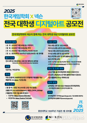 한국게임학회와 넥슨코리아가 공동 주최하는 ‘2025 한국게임학회×넥슨 전국 대학생 디지털아트 공모전’이 열린다. 이번 공모전은 전국의 대학(그에 준하는 교육기관 포함)에 재학 중이거나 휴학 중인 학생을 대상으로 하며, 게임과 디지털아트 사이의 새로운 시각적 언어를 확인하고, 차세대 창작자의 실험적 시도를 지원하기 위해 마련됐다. 이번 공모전 주제는 ‘자유’이며, 인공지능(AI) 기반 작품을 포함한 모든 형식의 디지털아트 작품 출품이 가능하다. 출품 형식은 컨셉아트, 3D 렌더링, 일러스트 등 자유롭게 표현할 수 있으며, 규격은 A2(420×594mm), JPEG, CMYK, 200dpi 형식으로 온라인 제출하면 된다. 특히 올해는 ‘K-컬처(K-Culture)’를 특별주제로 지정해, 한국의 문화적 정체성과 미학을 창의적으로 해석한 작품에는 가산점이 부여된다. 접수비는 1점당 3만원, 1인당 최대 3점까지 출품 가능하며, 마감은 내달 16일 자정까지다. 수상작은 11월 29일, 중앙대 100주년기념관 1층 로비홀에서 전시되며, 대상 1명에게는 상장과 상금 3만원이 수여된다. 이외에도 최우수상, 넥슨상, 우수상, 특선, 입선 등의 다수의 수상작이 선정될 예정이다