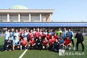 국회의원축구연맹과 국회출입기자단축구팀이 2일 국회 축구장에서 친선 연습경기를 가졌다. 국회의원축구연맹은 오는 25일 서울 마포구 상암월드컵 경기장에서 여야 의원들이 한 팀이 돼 일본과 승부를 벌일 예정이다. 이에 앞서 국회출입기자단축구팀과 연습 경기에 나섰다. 이날 연습경기에는 더불어민주당에는 김영진·김용갑·천준호·김영배·김기표·김원이·이재강·문금주·김동아 의원 등이 국민의힘에서는 이상휘·이헌승·정동만·박형수·박성민·구자근·김승수·의원 등이 출전해 컨디션을 점검했다. 한편, 이날 연습경기에는 더불어민주당 한병도 원내대표와 서삼석·임오경 의원 등도 응원을 나와 눈길을 끌었다. 또, 한상철 국회의원축구연맹 감독과 국회출입기자단축구팀 단장인 구영회 기자와 감독인 이용우 기자는 연습경기지만 필승을 다졌다.