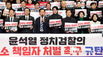 정청래 더불어민주당 대표가 4일 “범죄를 수사하고 범죄를 처벌해야 할 검사가 오히려 범죄를 저질렀다면, 그 수사 검사에 대해서 처벌해야 되는 것은 당연한 일”이라고 목소리를 높였다. 정청래 대표는 4일 국회 로텐더홀에서 열린 윤석열 정치검찰의 조작기소 책임자 처벌 촉구 규탄대회 “지난 윤석열 검찰 독재 정권 기간 동안 야당 탄압 정적 제거, 이재명 죽이기에 온몸으로 맞서 싸웠다”며 이같이 말했다. 정 대표는 “이재명 대통령 당대표 시절 언론의 칼로, 검찰의 칼로 그리고 진짜 칼로 죽이려 했으나 우리 민주당은 온몸으로 맞서 싸웠다. 이에 검찰의 칼로 이재명 대표를 죽이지 못하자 결국 계엄군의 총칼로 야당 탄압, 정적 제거, 이재명 대통령을 죽이려 했으나 국민들 덕분에 살아날 수 있었다”고 말했다. 그러면서 “이제 지난 윤석열 검찰 독재 정권 기간 동안 자행되었던 검찰의 무도한 조작 기소에 대해 내란을 단죄하는 것과 마찬가지로 검찰의 조작 기소도 단죄해야 할 시점이고 국민적 요구도 높은 상황”이라고 강조했다. 이어 “진술조작, 연어파티 등 검찰에서는 아니라고 항변하고 있지만 국민 대다수는 검찰의 조작기소가 있었다고 믿고 있지 않나”라며 “대장동 사건에서도 ‘재창