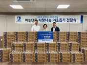 수원시 영통구 매탄3동행정복지센터(동장 김병목)는 지난 22일, 추석 명절을 맞이하여 매탄중심상가 상인회(회장 정희경)가 관내 어려운 이웃을 위해 컵라면 200박스를 기탁해 왔다"고 23일 밝혔다. 매탄중심상가 상인회는 매년 명절마다 지역의 취약계층을 위한 물품을 꾸준히 지원해오고 있다. 후원된 물품은 매탄3동 내 복지 사각지대 위기가구 및 기초수급자 등 어려운 이웃 200가구에 전달될 예정이다. 정희경 상인회장은 "추석 명절을 맞아 지역 사회에 조금이나마 도움이 되고자 이번 후원을 결정했다. 매탄3동의 많은 이웃들이 이 컵라면을 통해 따뜻한 식사와 함께 명절의 기쁨을 나눌 수 있기를 바란다”고 말했다. 김병목 매탄3동장은 "매년 꾸준히 이웃을 돕는 매탄중심상가상인회 회원들에게 다시 한 번 감사의 인사를 드린다. 후원물품이 필요한 분들이 따뜻한 명절을 보낼 수 있도록 신속히 전달하겠다”고 전했다.