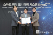 대웅제약은 11일 본사에서 씨어스테크놀로지, 엑소시스템즈와 함께 스마트 병상 모니터링 시스템 공동 개발 및 사업화를 위한 3자 업무협약(MOU)을 체결했다고 밝혔다. 이번 협약으로 디지털 헬스케어 기술 플랫폼 ‘씽크(thynC)’에 근육 활성 신호 수집 기술이 결합되면서, 임상 현장에서 근감소증 진단까지 가능한 스마트병동 통합 솔루션(thynC–exoPill 연동) 구현이 가능해졌다. 대웅제약은 병원 대상 솔루션 도입, 마케팅 활동, 사업설명회 운영, 신규 병원 발굴 등 영업 전반을 맡는다. 씨어스테크놀로지는 AI 기반 병상 모니터링 시스템 ‘씽크’와 엑소시스템즈의 근육 신호 분석 솔루션 ‘엑소필(exoPill)’을 연동한 통합 플랫폼 개발을 담당한다. 엑소시스템즈는 엑소필 기기의 기술 안정성 확보와 제품화·상용화를 추진한다. 기존에는 입원 환자가 근육 기능평가 등 주요 검사를 위해 병실 밖 검사실로 이동해야 했다. 이 과정에서 환자 불편이 컸으며 의료 인력의 업무 부담도 증가해 왔다. 엑소필은 생체신호 수집 기술을 기반으로 생리학적 전기 자극이 가능한 웨어러블 의료기기다. 새로 개발되는 씽크–엑소필 통합 솔루션은 기존 혈압·혈당·심전도·산소포화도·체온 데이