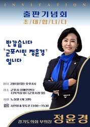 경기도의회 부의장 정윤경 도의원(더불어민주당·군포1)이 2월 1일 오후 4시 군포시장애인센터 다목적 강당에서 저서 ‘군포시민 정윤경입니다.’ 출판기념회를 개최한다. 22일 정윤경 부의장 측에 따르면 이번 출판기념회는 군포시 최초 3선 도의원으로서 그동안의 의정활동을 정리한 책의 발간을 기념해 마련됐다. ‘군포시민 정윤경입니다.’는 정 부의장이 도민을 직접 만나 민원을 청취하고 이를 조례, 예산, 정책으로 연결해 온 의정활동의 과정을 담은 기록물이다. 현장에서 시민들과 나눈 고민과 생각, 그간의 보도자료와 조례 발의 사례 등을 백서 형식으로 정리해 ‘사람을 향한 정치’를 실천해 온 여정을 담아냈다. 정윤경 부의장은 “정치는 말로 시작하는 것 같지만, 사실은 태도에서 시작된다고 믿는다”며 “부족한 기록일지라도 3선 의정활동의 마무리를 군포 시민들과 함께하고 싶었다”고 출판 배경을 밝혔다. 이어 “앞으로도 일 잘하는 정치인으로서 늘 군포 시민의 삶의 현장에 함께하겠다”고 말했다. 한편 출판기념회 당일 오후 1시부터 3시까지는 사인회와 포토존 운영 등 식전 행사가 진행되며, 오후 4시부터는 개그맨 노정열 씨의 사회로 본행사가 열릴 예정이다.