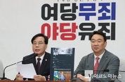 국회 ‘윤석열 정권 정치검찰 조작기소 의혹 국정조사 특별위원회’는 14일 전체회의를 열고 쌍방울 대북송금 사건 관련 청문회를 개최했지만 ‘쌍방울 대북 송금’ 사건을 수사했던 박상용 검사가 청문회에서 증인 선서를 거부하면서 특위는 아수라장이 됐다. 이후 박 검사는 퇴장해 대기 장소로 이동했다.