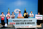 진보당이 24일 국회에서 ‘학교비정규직 노동자 5151명 진보당 입당 환영 및 6.3 지방선거 출마 선언 기자회견’을 열었다. 이날 기자회견에는 진보당 김창년 공동대표와 정혜경 국회의원과 전국학교비정규직노동조합의 민태호 위원장, 유혜진 정치통일위원장, 고혜경 인천지부 교육위원장을 비롯한 조합 간부 등이 참석했다. 국내 최초의 여성 비정규직 노동자 출신 국회의원인 정혜경 의원은 “비정규직 제도를 비롯한 반노동 정책을 폐기하라"며 "온 국민이 인간다운 삶을 살 수 있도록 노동중심 사회를 실현하는 것이 진보당의 강령이자 목표”라고 밝혔다. 이어 “학교비정규직 노동자들의 학교급식법 개정운동 사례를 통해 지방의회에서도 노동자 출신의 지역정치인을 배출하고, 생과 현장의 요구를 오롯이 실현해내는 입법운동을 벌여 나가자”고 목소리를 높였다. 김창년 공동대표는 “내 삶을 바꾸는 법을 내 손으로 만들고, 우리 아이들의 급식실을 안전하게 만드는 것이 바로 정치"라며 "5151명의 노동자들이 이제 관망자가 아닌 주권자로서 직접 정치를 하겠다고 선언한 것”이라고 말했다. 이어 “이제 학교비정규직 노동자는 더 이상 '민원의 대상'이 아니라 스스로 '입법과 정책의 주체'가 되어 차별받