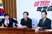 더불어민주당은 24일 중동 사태 장기화로 우리 경제에 빨간불이 켜지고 있다고 우려를 표했다. 한병도 더불어민주당 원내대표는 이날 국회 본관에서 열린 원내대책회의에서 “환율 상승으로 기업들의 원자재 조달 부담이 커지고, 해외 투자와 생산에도 차질을 빚고 있다”며 “치솟는 국제유가는 서민경제에 직접적인 영향을 미치면서 물가 상승 압박도 키우고 있다”고 말했다. 이어 “중동발 경제 위기를 타개하기 위해, 민·관은 물론이고 우리 정치권도 하나로 뭉쳐야 할 때”라며 “국가적 위기 상황 속에서도 정쟁을 이어가고 있는 국민의힘에 공당의 자격이 있는지 묻지 않을 수 없다”고 꼬집었다. 그는 “지난주 본회의에서 민주당은 환율안정법 처리를 호소했으나, 국민의힘이 결국 불응했다”며 “국민의힘이 외면한 것은 환율안정법이 아니라, 고유가·고환율로 고통받는 우리 국민과 기업”이라고 지적했다. 그러면서 “국민의힘은 추경안이 국회에 제출되기도 전부터 선거용으로 왜곡하기에 급급한 모습을 보이고 있다”며 “민주당은 정부의 민생 추경을 두고 정쟁을 펼치거나, 거래의 대상으로 삼으려는 일체의 시도를 절대 용납하지 않겠다”고 압박했다. 그는 또 “국민의힘이 해야 할 일은 혹세무민이 아니라, 위기