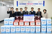수원지방법원이 동절기를 맞아 수원시 영통구에 거주하는 어려운 이웃을 위해 정성을 가득 담은 ‘사랑의 김치’ 등 물품을 후원해 연말을 맞아 훈훈함을 더했다. 수원시 영통구는 "지난 27일 수원지방법원(법원장 김세윤)이 연말을 맞아 영통구에 지역사회 나눔의 일환으로 직접 담근 김치와 함께 라면, 화장지 30박스 등 모두 90박스의 물품을 기부했다"고 28일 밝혔다. 전달식에는 수원지방법원 김세윤 법원장과 법원관계자, 장수석 영통구청장을 비롯한 구청 관계자들이 함께 참석해 따뜻한 온정을 나누는 시간을 가졌다. 수원시 영통구에 따르면 "수원지방법원은 지난 2021년부터 영통구에 정기후원을 꾸준하게 추진해 오고 있는데 법관을 포함한 사무직원등 수원지방법원 봉사단체인 ‘사랑나눔회’가 축을 이뤄 직접 김치를 담그고 후원물품을 더하여 관내 취약계층에게 온정을 전해 오고 있다"고 강조했다. 이같은 봉사는 대한민국의 최후 보루인 사법부에서 어려운 이웃에 대한 사랑과 나눔을 적극 실천하고 있는 가운데 사법부가 「국민에게 가까이 있는 법원상」을 구현하기 위해 힘써 나가고 있다는 평가다. 영통구는 이번 후원받은 물품을 지역 내 취약계층 30여 가구에 고루 지원할 방침이다. 김세윤