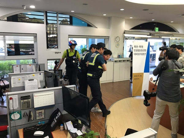 남윤수 열린민원실장은 “현재 열린민원실에는 안전요원을 배치하고 피해 예방과 객관적인 상황을 기록하기 위한 CCTV와 지구대 직접연결 방식의 비상벨을 설치하는 등 안전한 근무환경 조성을 위해 최선을 다하고 있다”며 “훈련을 통해 폭언·폭행 등 민원실 내 위협적인 비상상황에 대해 담당공무원들의 대응능력을 향상시킬 수 있을 것으로 기대한다”고 말했다.