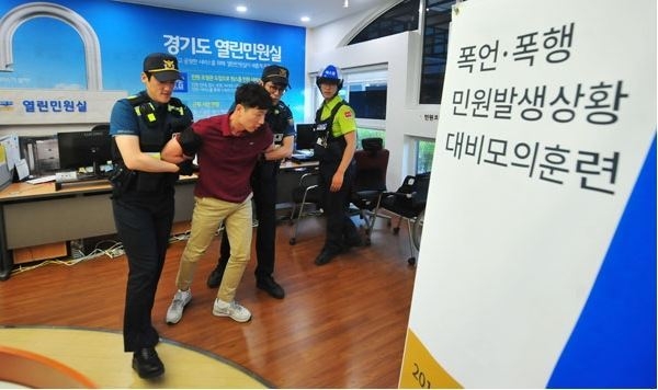 경기도는 오는 18일 도청 열린민원실에서 폭언, 폭행 등 특이민원 발생상황을 대비한 모의훈련을 실시한다고 16일 밝혔다.