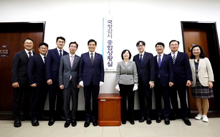 국회사무처(사무총장 김민기)는 10일 국회 본관에서 「국정감사 종합상황실」 현판식을 개최했다. 「국정감사 종합상황실」(본관 704호)은 위원회별 감사 진행 상황을 종합하고 내실 있는 국정감사를 지원하는 역할을 하게 된다.