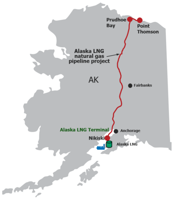 알래스카 LNG 사업은 미국이 2010년대 셰일오일 수출국으로 부상하면서, 잉여 천연가스의 수출 해법으로 주목받고 있다. 특히 북미 LNG 수출 항구와 비교적 가까운 아시아 시장을 주요 타깃으로 참여를 서두르는 것으로 알려졌다.