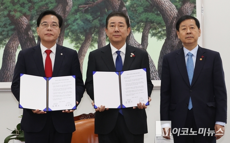 여야가 2일 국회에서 내년도 예산안 처리에 합의했다. 김병기 더불어민주당 원내대표와 송언석 국민의힘 원내대표는 이날 오전 국회에서 원내대표 회담을 하고 내년도 예산안을 오늘 오후 본회의 처리하기로 합의했다.