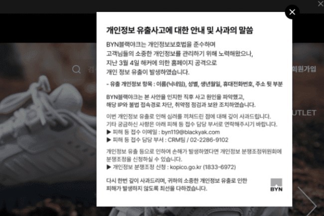 이 사고로 개인정보보호위원회는 블랙야크에 13억9천만 원대 과징금과 함께 홈페이지 공표를 명령했다.
