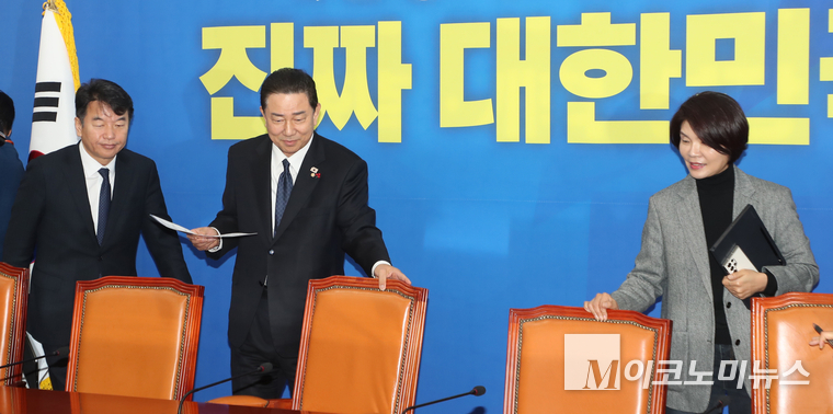 「M포토」 원내대책회의 참석하는 민주당 원내지도부
