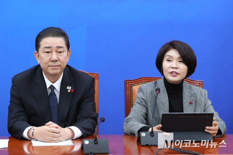 「M포토」 원내대책회서 발언하는 한정애 정책위의장