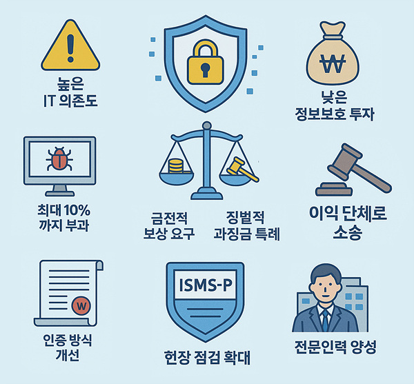 개인정보위는 국내 기업의 잦은 해킹 피해 원인으로 높은 IT 의존도와 낮은 정보보호 투자 등을 지적했다. 위원회는 올해 반복·중대 위반에 대해 전체 매출액의 최대 10%까지 부과하는 징벌적 과징금 특례를 도입할 예정이다.