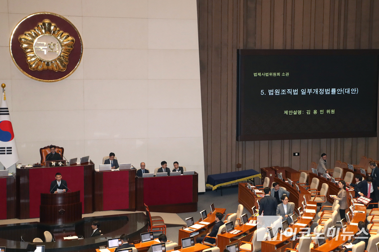 한편, 오늘 처리 예정인 ‘대법관증원법 (법원조직법 일부개정법률안)’은 현재 14명인 대법관을 26명까지 늘리는 내용이 핵심인, 법원조직법 개정안이다.